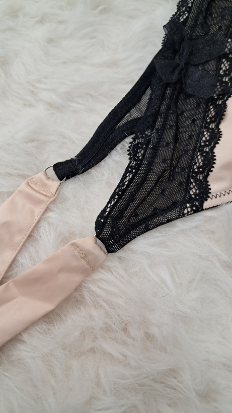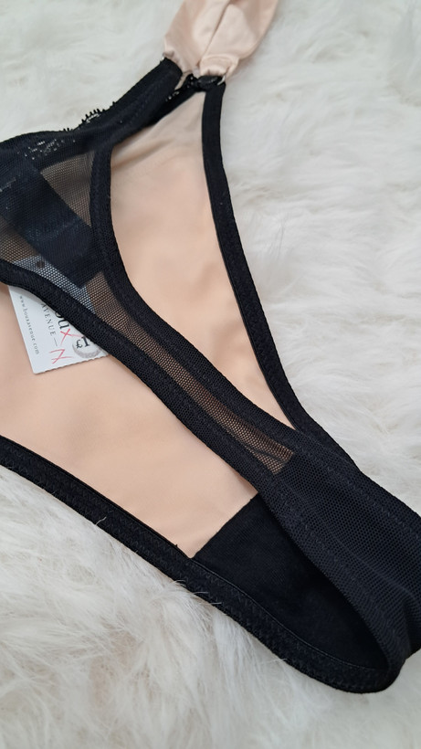 شورت تانگ زنانه با ساتن درجهیک و لطیف، تزیینشده با تور/گیپور ظریف در قسمت جلو. طراحی فانتزی و شیک با تنخور عالی، سبک و جذاب، مناسب لباسهای جذب و خاصپسندها.