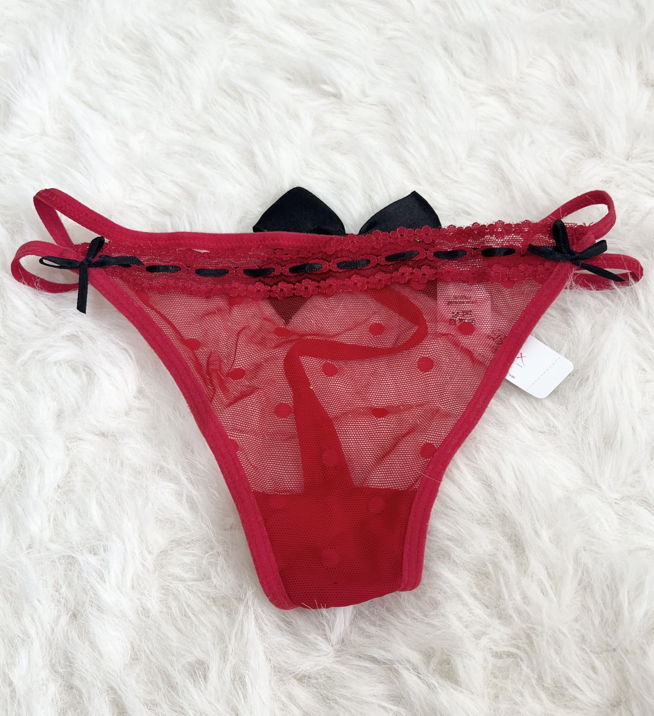 شورت فانتزی قرمز توری توپ توپی پاپیون دار بک لِس انگلیسی